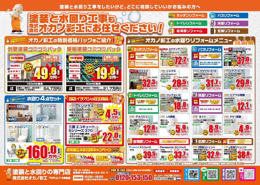 塗装と水回りの専門店 株式会社オカノ彩工です。
