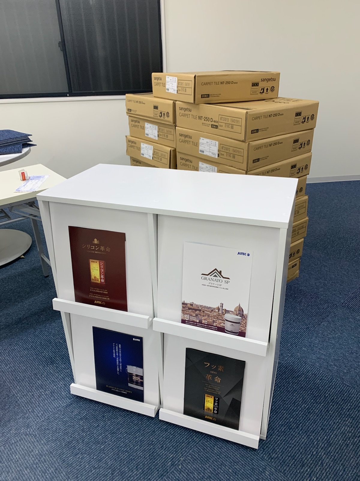 お客様が少しでもカタログなどを見やすいようにする為、新調した棚も絶賛組み立て中です(`・ω・´)