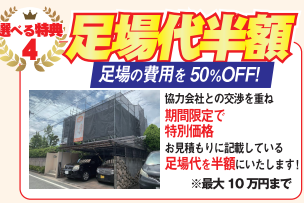 お見積りに記載している足場代を半額にてご提供いたします❕