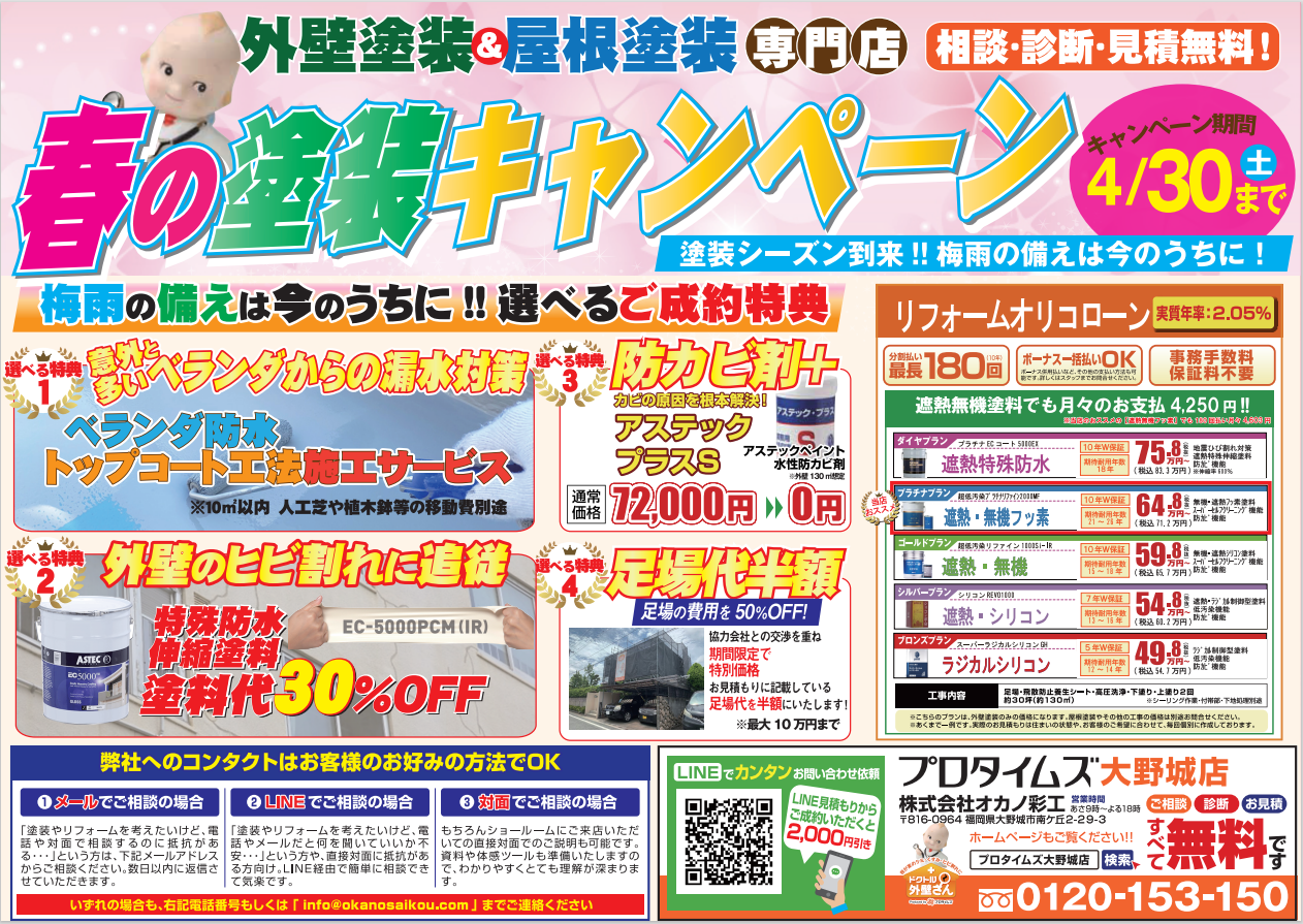 暖かくなったこの春に、塗装をお考えの方には、とてもお得なキャンペーンになっております☻