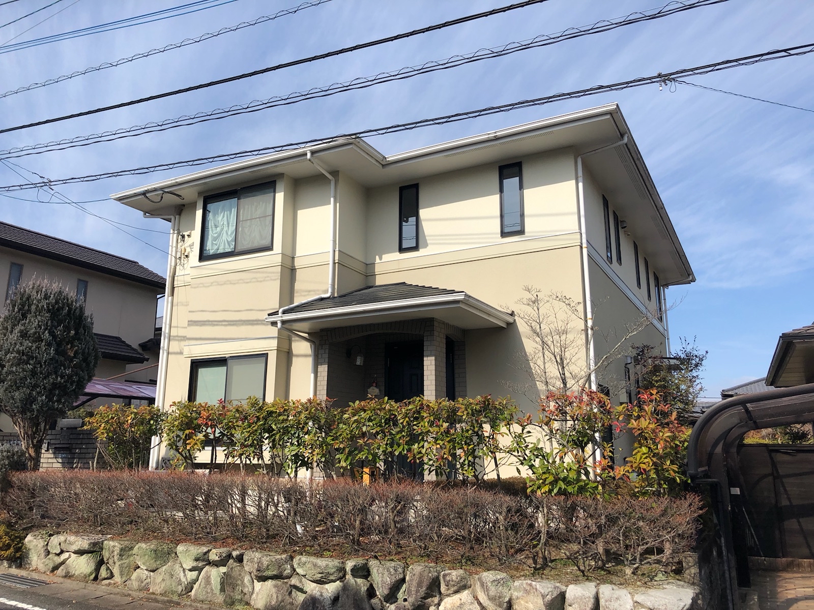 外壁は、苔カビやひび割れを重点的に補修し塗装しました。