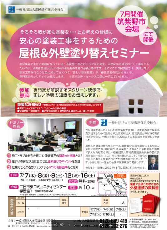 ☁7月度『塗り替えセミナー』のお知らせ