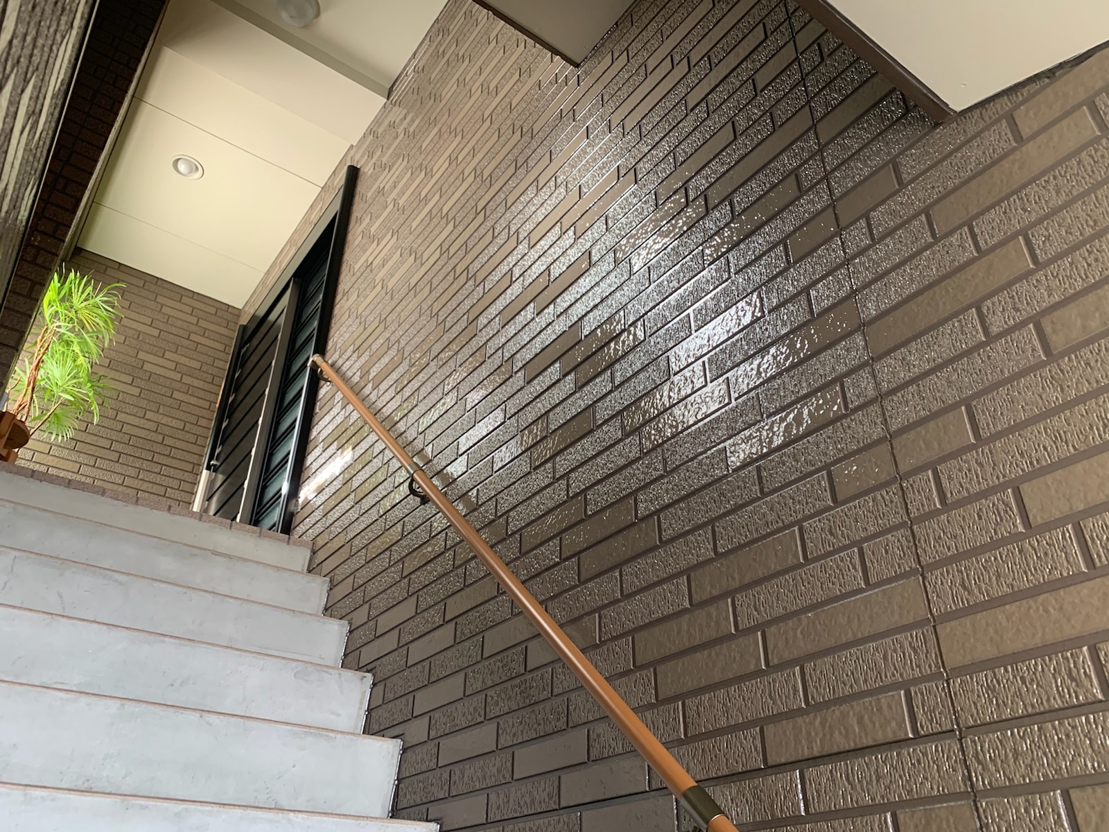 内部の外壁は、クリヤー塗装出来る状態でしたので外壁のタイル柄を生かして施工しました✨