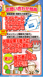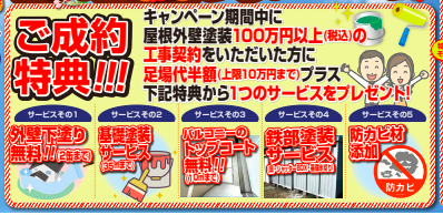 キャンペーン期間中に屋根外壁塗装100万円以上(税込)の工事契約をいただいた方に