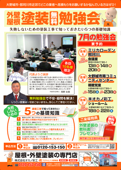 7月度『外壁塗装・屋根塗装の勉強会』のお知らせ☂