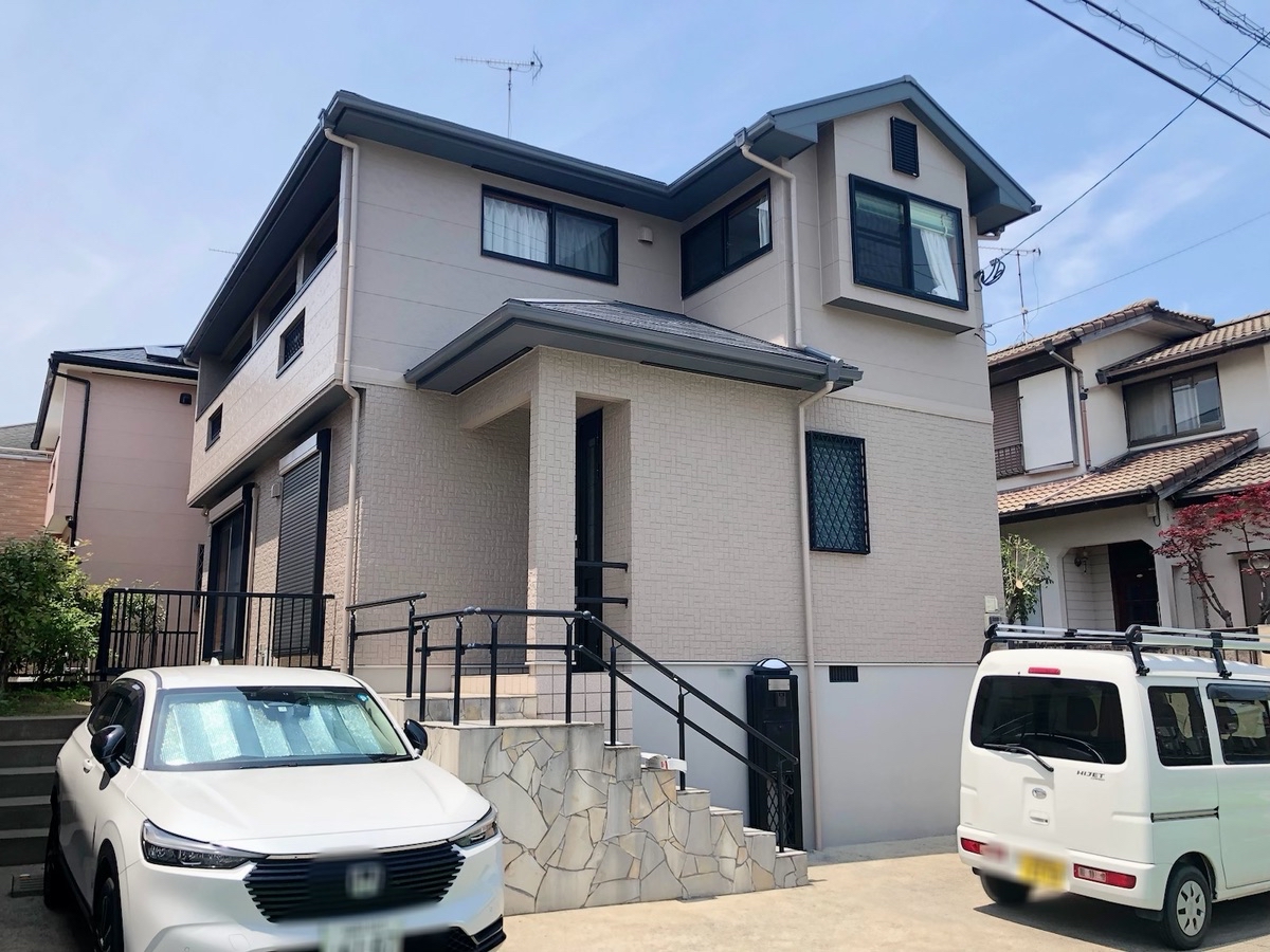 春日市松ヶ丘 S様邸🏡 完工✨外壁:ベイジュ8083・ 屋根:付帯部:ニンバス8082