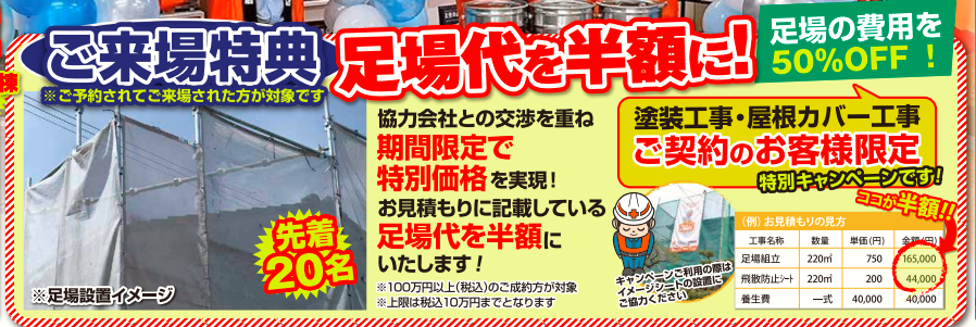 ご来場特典・・先着20名様に限りなんと、足場代半額❕❕