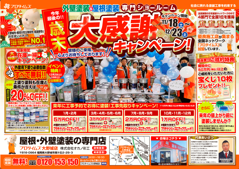 定期的に、各塗装店では、お得に外壁塗装・屋根塗装が出来るキャンペーンを実施しています。
