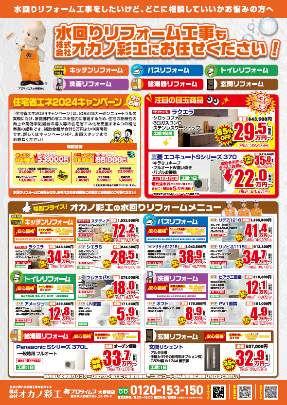 塗装と水回りの専門店 株式会社オカノ彩工です。