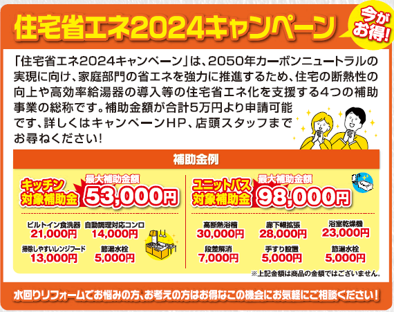 キッチン対象補助金 ➡ 最大補助金額 53,000円