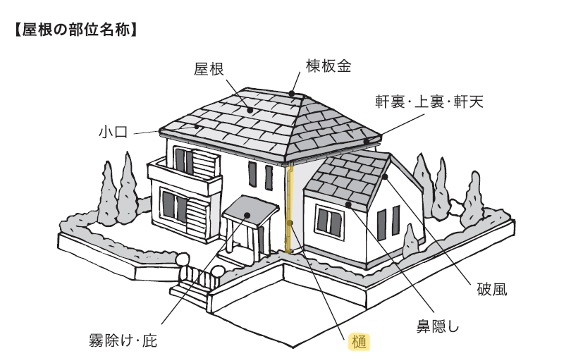 雨樋も経年劣化によってチョーキングや、塗装の剥がれが発生します。雨、風、雪などの自然の影響を大きく受けやすい雨樋は見た目以上に傷んでいることがあります。経年劣化してひどい状態になると雨樋のひび割れや破損で穴があくこともあります。その場合、塗装ではなく、交換する必要があります。