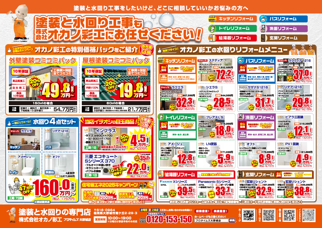 塗装と水回りの専門店 株式会社オカノ彩工です。