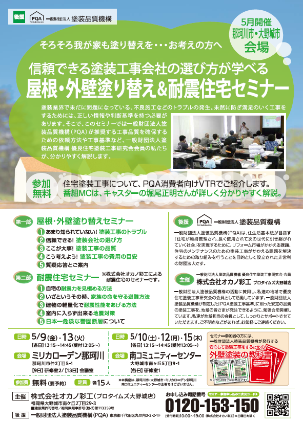 【5月開催】那珂川市・大野城市『屋根・外壁塗り替えセミナー耐震住宅セミナー』