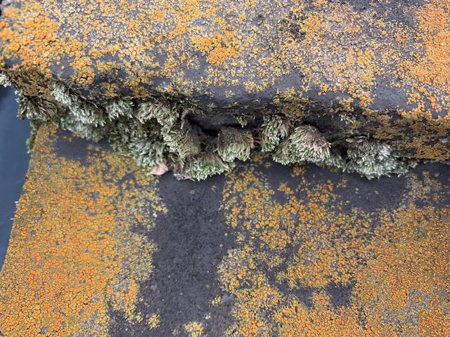 屋根の表面に緑色や黒ずみが見える場合、それはコケやカビ、藻の可能性があります。これらは水分を含みやすく、屋根の劣化を早めます。