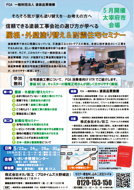 【5月後半開催】太宰府市『屋根・外壁塗り替えセミナー耐震住宅セミナー』