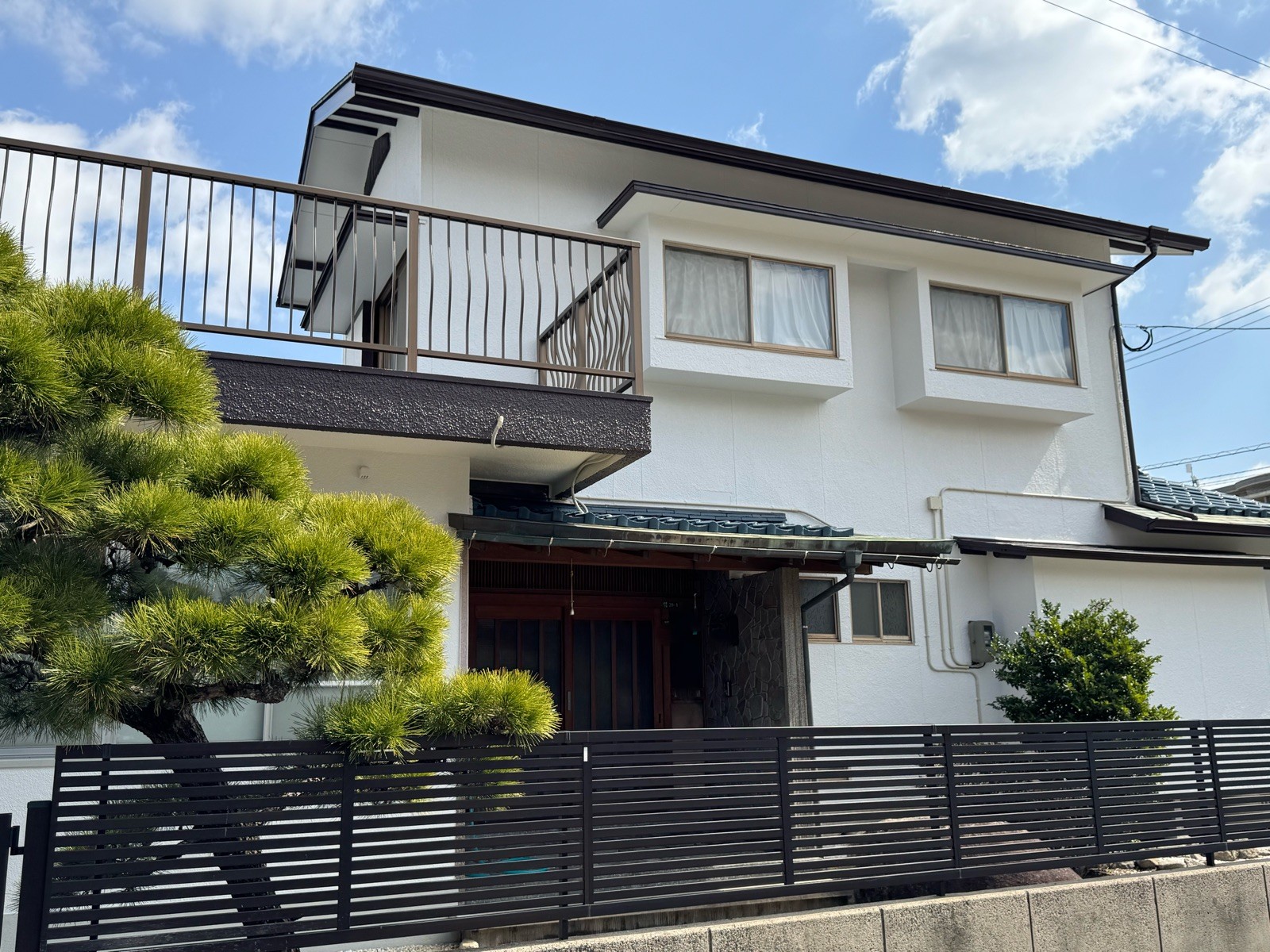 和瓦の住宅においても、外壁に白色を採用することで、和風の趣を残しつつシンプルで清潔感と新鮮さが際立ち、地域住民からも高い評価をいただいています。和風の住宅はサッシや玄関ドアが濃色なことが多く、また瓦も基本的には濃色なので、外壁全体を白く塗ってもそれらが良いアクセンとになります。