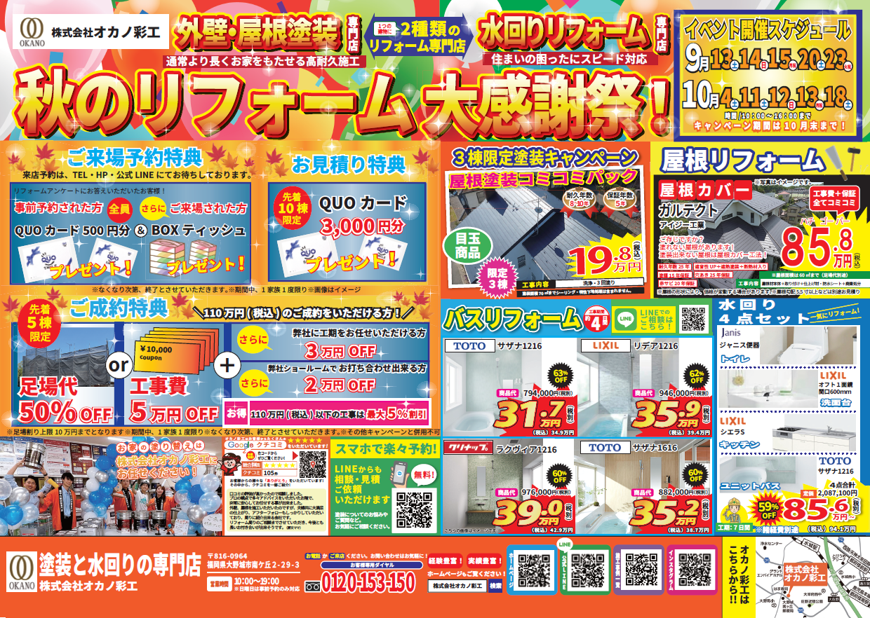 【福岡 外壁塗装】いよいよ明日が最終日💦🍁秋のリフォーム大感謝祭🍁