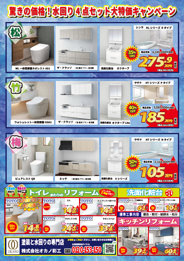 水回り松竹梅それぞれ4点セット大特価キャンペーン!!!