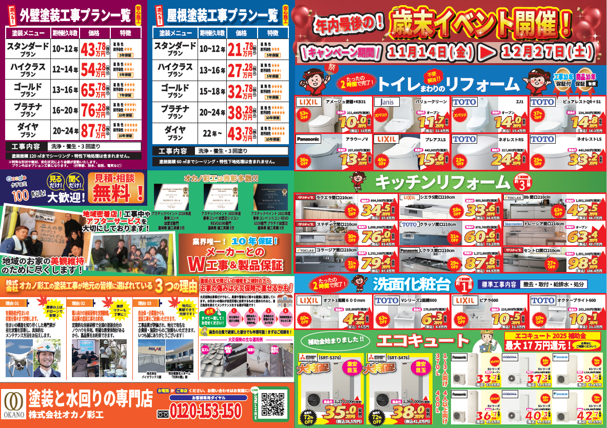塗装と水回りの専門店 株式会社オカノ彩工です。