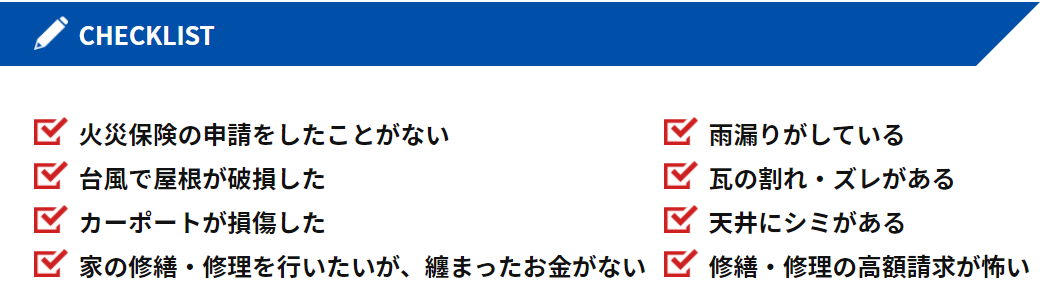 火災保険は、大きな台風によって屋根や外壁に被害が出た場合はもちろん、